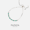 Set with round 3 mm cultured emeralds, the stones bring a vibrant green brilliance, symbolising renewal and timeless beauty. The lightweight 4.4 g design ensures comfort for everyday wear, while the adjustable length of up to 25 cm offers a versatile fit for any wrist.