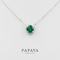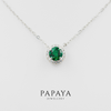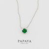 At its heart lies a 5.0 mm round cultured emerald, glowing with rich green brilliance. Accented by brilliant-cut white moissanites, the design captures diamond-like fire while enhancing the emerald’s natural depth and colour. Suspended from a 46 cm adjustable chain, this lightweight 1.5 g pendant rests gracefully on the neckline, perfect for layering or wearing solo as a subtle statement.